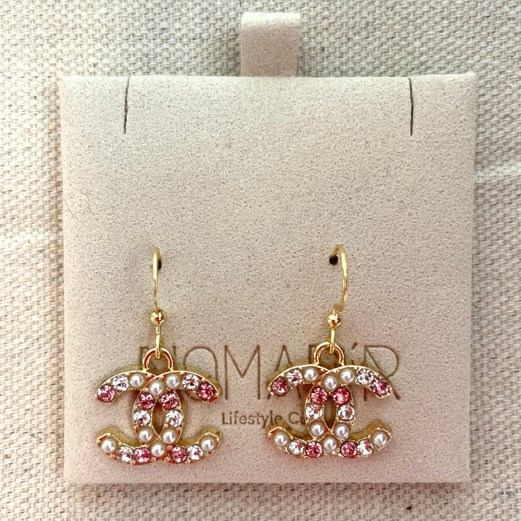 CC Crystal/Pearl Drop Earrings- PINK/GOLD