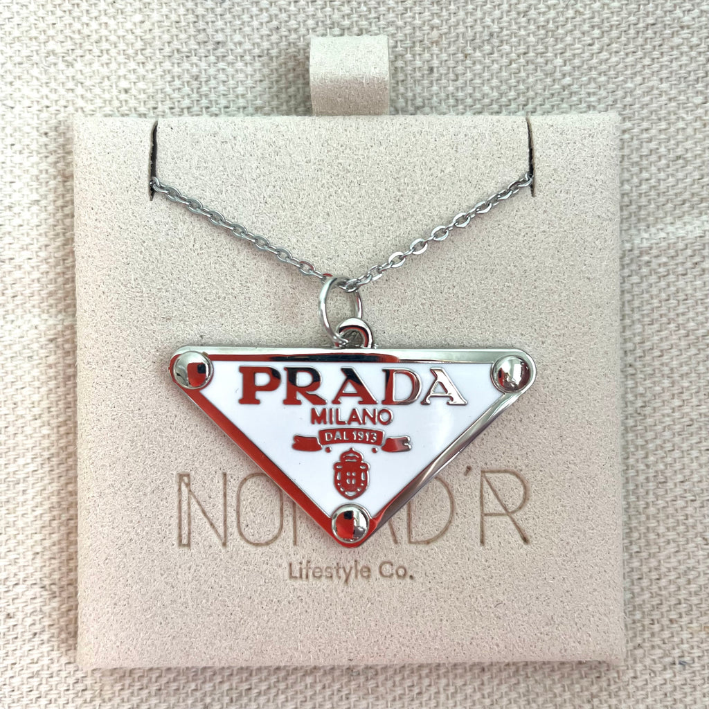 Triangle Tag Necklace- WHITE/SILVER