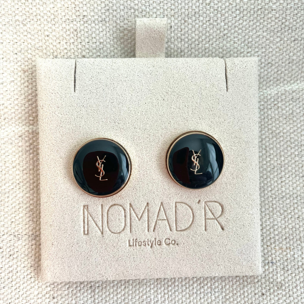 YSL Logo Disc Stud Earrings- BLACK