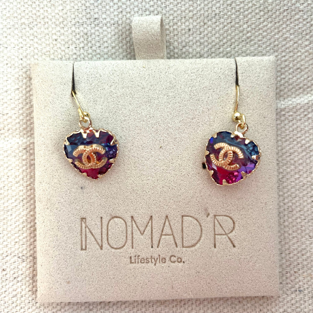 CC Crystal Heart Earrings- PURPLE